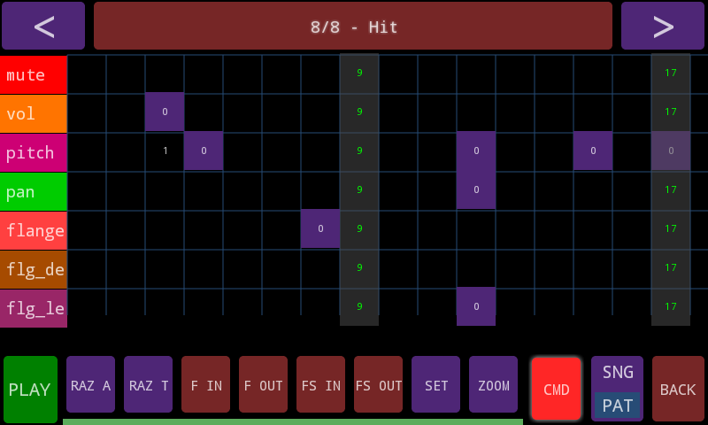 Tap FS OUT to enter values whith a slow fade out (from 0 to 10 each 8 steps)